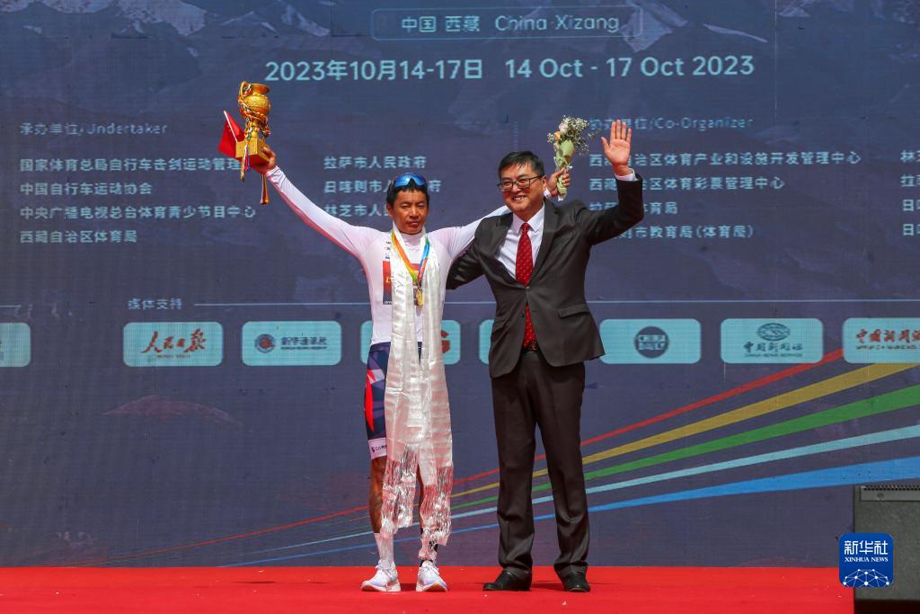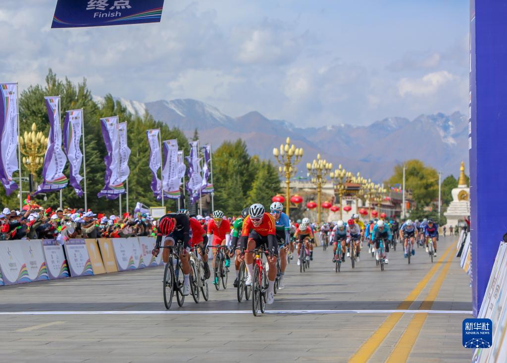 10月17日,參賽選手沖過終點(diǎn)。新華社記者 普布次仁 攝