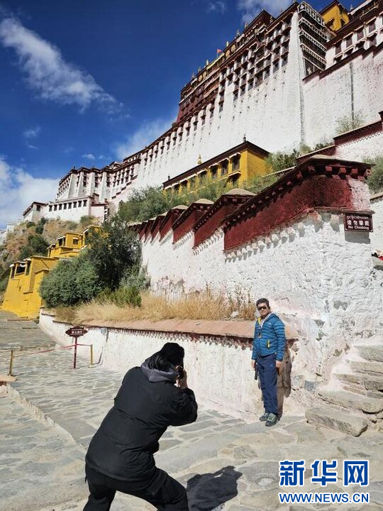 10月18日,游客在布達(dá)拉宮前拍照留念。新華網(wǎng) 蘇思源 攝