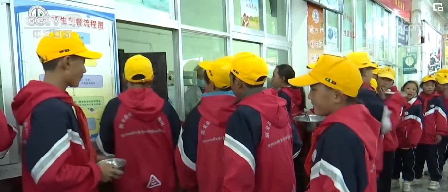 學(xué)校的學(xué)生絕大部分來自牧區(qū),寄宿制能夠保證更好的教學(xué)質(zhì)量,但并不強制。晚上下課后,離學(xué)校近的學(xué)生由家長接走,格桑堅才則和小伙伴去食堂吃晚飯。學(xué)校還配備生活老師,照顧學(xué)生的日常起居、提供日用品。這些費用都由中國從1985年開始,對西藏自治區(qū)實施的教育“三包”政策負(fù)擔(dān)。包吃、包住、包學(xué)習(xí)費用,學(xué)生家庭不用出一分錢。2023年這一政策的補助金額又再次提高,達到年生均4000—5000元。這所學(xué)校的升學(xué)率能達到100%。