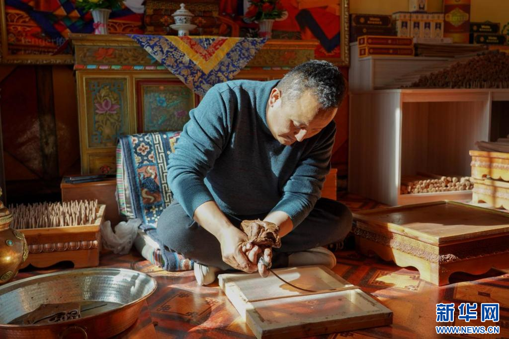 圖為旦增曲扎正在制作藏香(10月20日攝)。新華網(wǎng)發(fā) 司秦菱 攝