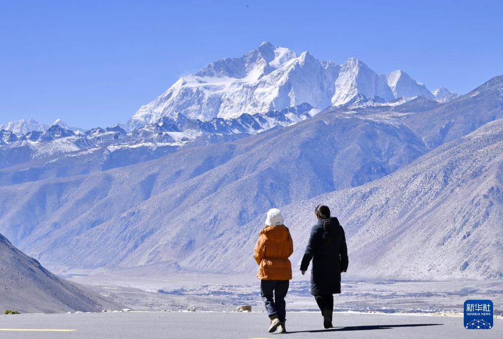 深秋,西藏日喀則市定日縣天高氣爽,游客前來(lái)觀賞世界最高峰——珠穆朗瑪峰。