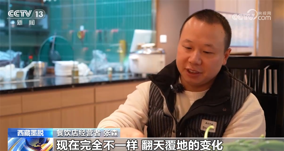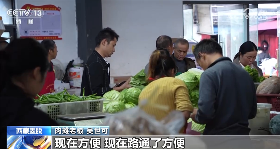 餐飲店經(jīng)營(yíng)者 張森:剛開店的時(shí)候,食材每天都要從波密自己開車去拉。早上六點(diǎn)鐘從墨脫縣就出發(fā),來(lái)回要晚上十點(diǎn)鐘才能到墨脫。吃一次魚是很難很難的,路太難走了,車也走得慢,魚拉過(guò)來(lái)都會(huì)死掉,時(shí)間太長(zhǎng)了?,F(xiàn)在不用去波密買菜,都在我們這邊菜市場(chǎng)采購(gòu)就行了,買一個(gè)多小時(shí)買完了?,F(xiàn)在完全不一樣,翻天覆地的變化,路也好了,生活物資也跟得上,水果那些也很豐富。