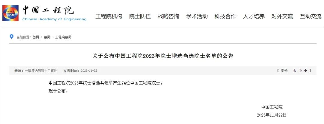 中國工程院公布了2023年院士增選當(dāng)選院士名單