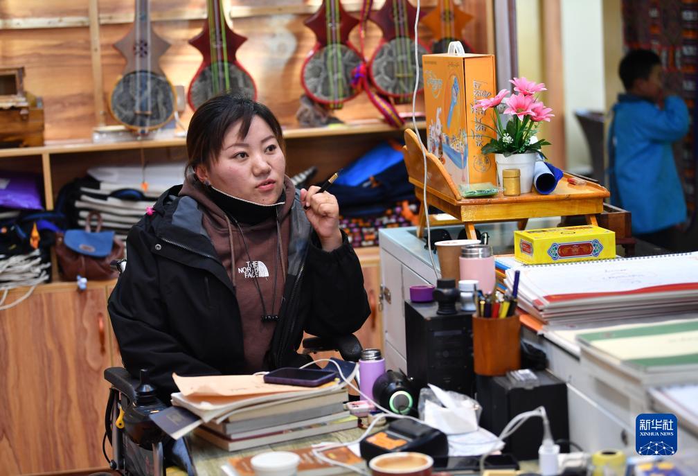 29歲的拉薩姑娘卓嘎因小兒麻痹落下殘疾,她在覺列的公司里學(xué)習(xí)了藏文書法,還成為拉薩八廓商城一個藏文書法和扎念琴體驗(yàn)班的負(fù)責(zé)人,最多的時候要為150名孩子授課?,F(xiàn)在她每月稅前收入有大約9000元。