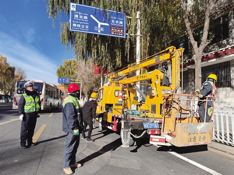 “結(jié)合拉薩市城鄉(xiāng)環(huán)境綜合大整治,我們?cè)陂_(kāi)展道路交通整治行動(dòng)中,積極聯(lián)合園林部門(mén)對(duì)于道路兩旁樹(shù)枝遮擋交通信號(hào)燈、指示標(biāo)牌和電子監(jiān)控探頭等問(wèn)題進(jìn)行全方位整改,此次整改點(diǎn)位155處,確保轄區(qū)道路交通安全暢通。在此,提醒廣大交通參與者,遇到修剪樹(shù)枝車輛,請(qǐng)減速慢行,確保交通安全?!崩_市公安局交警支隊(duì)城南大隊(duì)副大隊(duì)長(zhǎng)張浩表示。