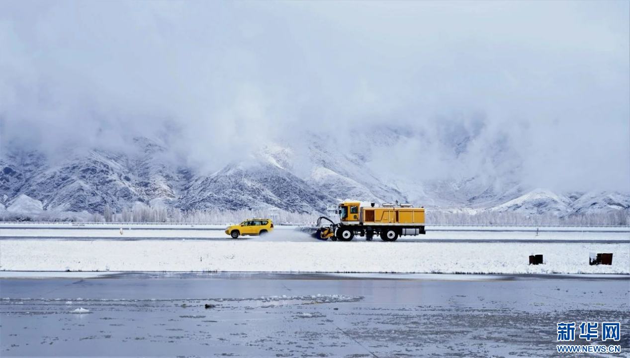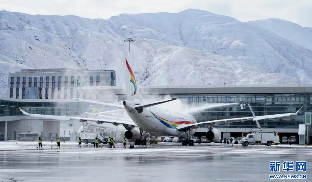 圖為拉薩貢嘎機場開展航空器除冰雪工作。新華網(wǎng) 白瑪群宗 攝