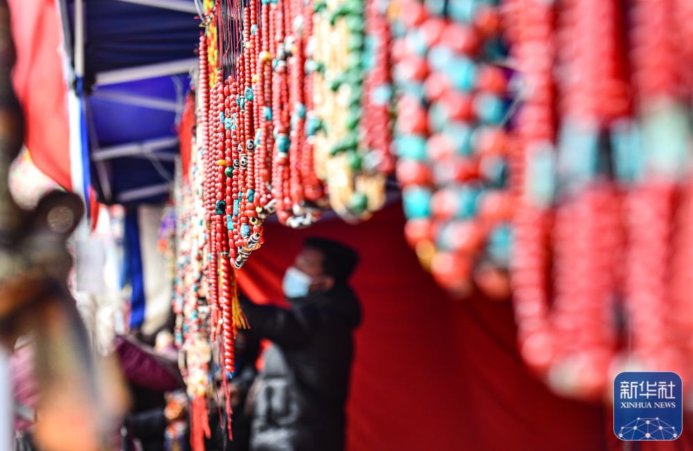 12月13日在西藏日喀則康馬縣冬季物資交流會(huì)上拍攝的藏式首飾。新華社記者 晉美多吉 格桑朗杰 攝影報(bào)道