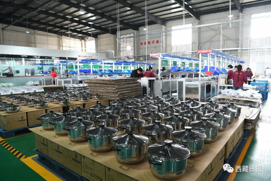 為滿足日漸增長的市場需求,自治區(qū)黨委、政府加大招商引資力度,全面優(yōu)化營商環(huán)境,加速推動民生產(chǎn)業(yè)做強做優(yōu)。目前,已引進(jìn)全球最大的不銹鋼壓力鍋制造商,推動9條生產(chǎn)線落地拉薩實現(xiàn)本地化生產(chǎn),建立覆蓋7地市的9個直營店,直接招收73名、間接帶動近500名農(nóng)牧民群眾就業(yè)增收。