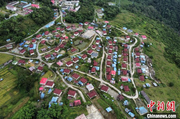 圖為2022年12月4日,西藏墨脫縣達(dá)木珞巴民族鄉(xiāng)村居錯(cuò)落有致。(無人機(jī)畫面) (布姆曲珍供圖)
