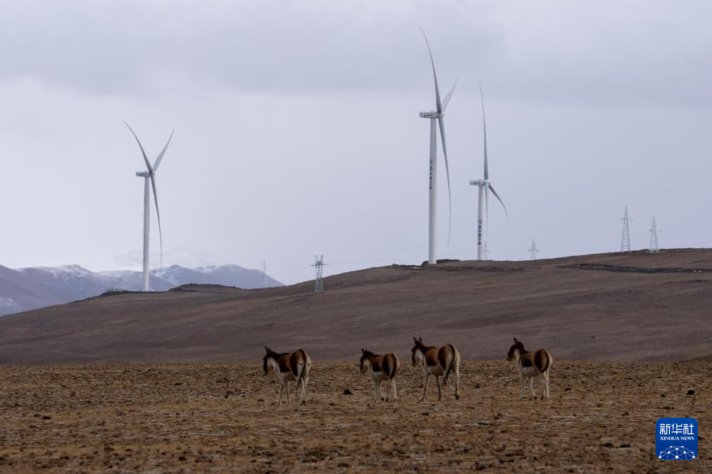 這是1月16日在西藏山南市措美哲古風(fēng)電場拍攝的藏野驢。新華社記者 旦增尼瑪曲珠 攝