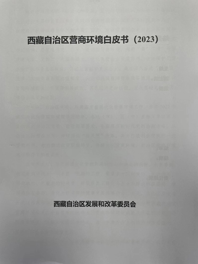 2024年1月23日,《西藏自治區(qū)營(yíng)商環(huán)境白皮書(2023)》發(fā)布,這是西藏自治區(qū)首次發(fā)布營(yíng)商環(huán)境白皮書。西藏聚焦“審批事項(xiàng)最少、審批時(shí)限最短、審批流程最優(yōu)、審批服務(wù)最好”目標(biāo),持續(xù)深化“放管服”改革,營(yíng)商環(huán)境改革成效顯著。