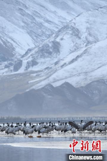 近日,西藏拉薩林周縣黑頸鶴保護(hù)區(qū)迎來一場大雪,黑頸鶴在雪山下的農(nóng)田、水庫里覓食、嬉戲。近年來,隨著生態(tài)保護(hù)力度加大,來拉薩市林周縣越冬的黑頸鶴等候鳥越來越多。被譽(yù)為愛情忠貞之鳥的黑頸鶴,是中國國家一級保護(hù)動物,作為高原生態(tài)變化指示性物種,主要棲息于海拔2500米至5000米的高原草甸、河谷、沼澤間。它有個可愛的藏文名叫“沖沖”,每年從藏北地區(qū)遷徙到拉薩北部的河谷。