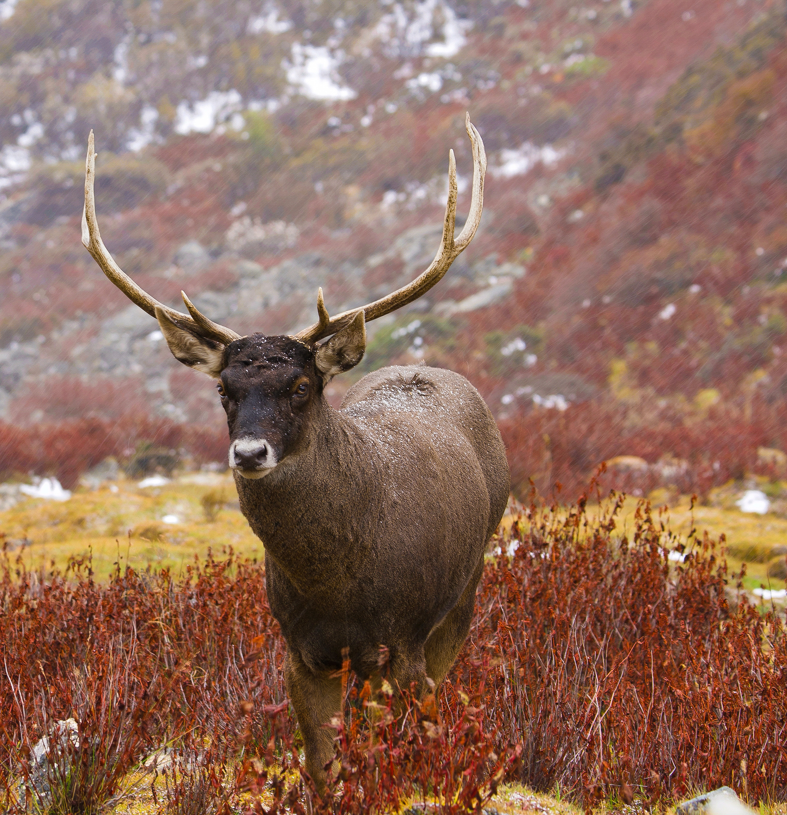 雪山下的馬鹿,國家二級(jí)保護(hù)動(dòng)物。