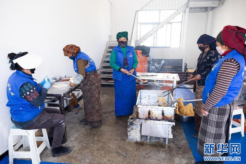 圖為西藏現(xiàn)代服務業(yè)技工學校的學員正在制作卡塞“德格”(1月29日攝)。新華網(wǎng)發(fā) 李騰 攝