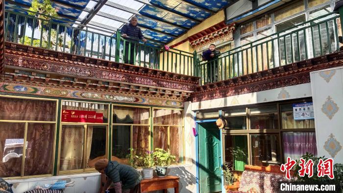“樓上樓下都有陽光,很暖和?!?月2日,西藏網(wǎng)絡(luò)媒體新春走基層活動(dòng)記者一行來到山南市瓊結(jié)縣昌嘎村,此時(shí)該村四組村民多吉在家里的二樓陽光房內(nèi)準(zhǔn)備過年用的經(jīng)幡,他的老伴則在一樓庭院內(nèi)整理衣物,午后的陽光透過玻璃窗落在沙發(fā)上,坐在這里感覺不到冬的寒意,郁郁蔥蔥的綠植讓這所溫馨的居所生機(jī)勃勃。