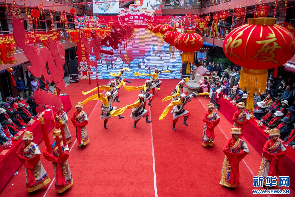 2月23日,拉薩市城關區(qū)雪巴拉姆藝術團的演員在德賽大院里表演。新華網(wǎng) 旦增努布 攝