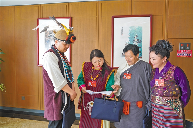 圖為3月6日上午,全國政協(xié)十四屆二次會議繼續(xù)進行小組討論。圖為來自少數(shù)民族界的住藏全國政協(xié)委員,在會議結(jié)束后圍繞政府工作報告交流討論。