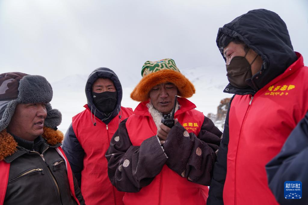 守護長江源的瑪曲鄉(xiāng)長江源環(huán)保志愿隊隊員(2月2日攝)。新華社記者 晉美多吉 攝