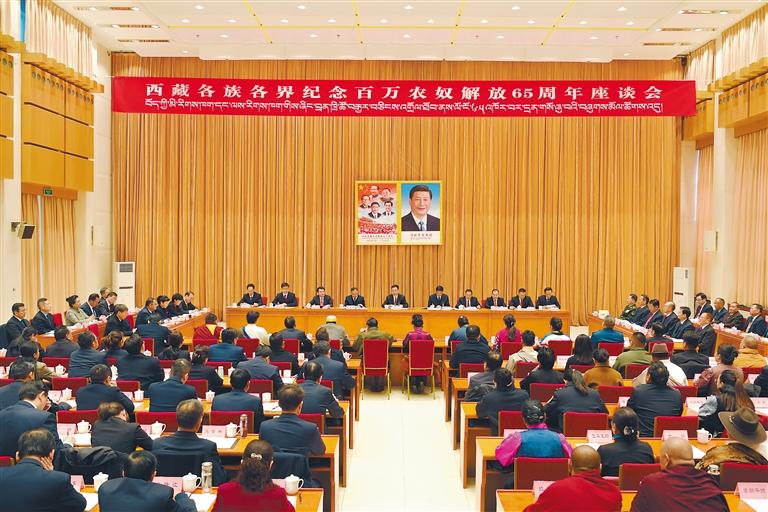 3月28日,西藏各族各界紀念百萬農(nóng)奴解放65周年座談會在拉薩召開。