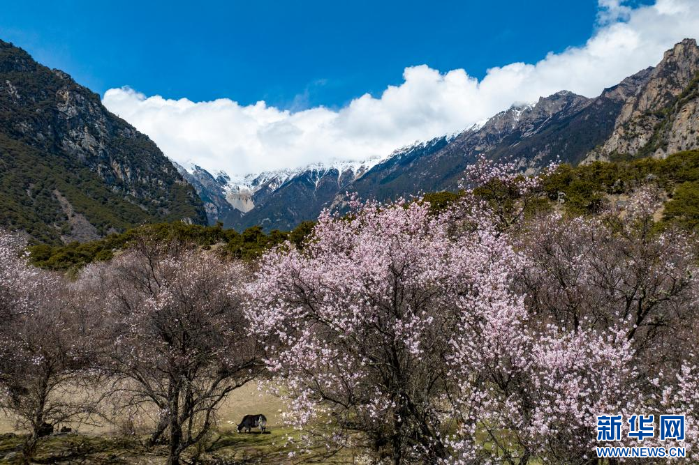 4月5日,在嘉黎縣尼屋鄉(xiāng)境內(nèi)盛開的桃花。新華網(wǎng) 旦增努布 攝