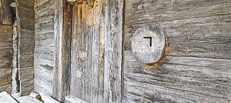 在村民的幫助下,我們依著鎖孔的形狀,將鑰匙平放進(jìn)去,沉進(jìn)鎖芯的孔道中,憑感覺挑起用小木塊做成的栓子,把沉重的木鎖從門邊的鎖洞中移除。接著,再用手伸進(jìn)鎖洞中摸索著移動(dòng)房門后的木栓,即內(nèi)鎖,多次嘗試后終于打開了一間糧倉(cāng)!