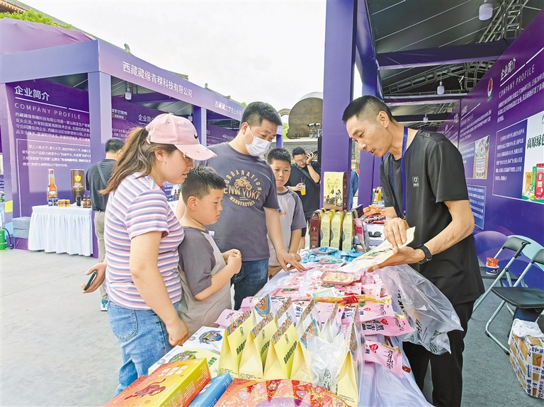 “牦牛肉干、青稞餅干等西藏特產(chǎn)都是健康綠色有機(jī)食品,應(yīng)該讓更多的人了解?!睆暮眮砦靼猜糜蔚睦壮F(xiàn)場購買了一聽青稞啤酒,打開品嘗后,他豎起了大拇指。從未踏足西藏的他,在西安品嘗到了西藏“味道”。