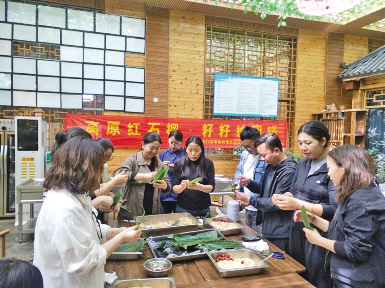 日喀則市行政審批和便民服務局組織開展共聚“民族餐”活動,各族干部在一起包粽子。