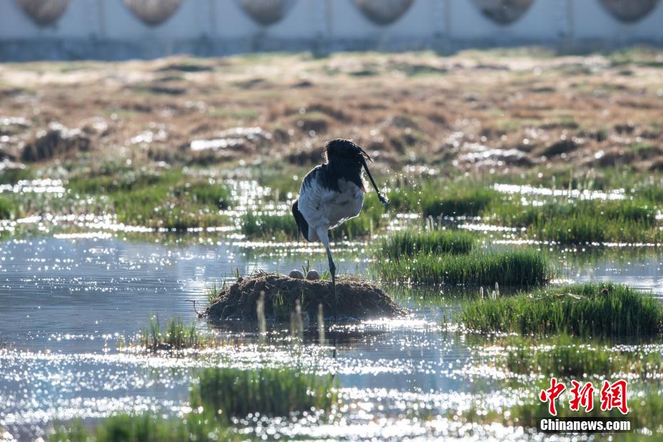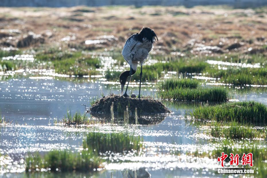 6月12日,西藏那曲市申扎縣濕地里一只黑頸鶴正準(zhǔn)備孵蛋。申扎縣,平均海拔超過4500米,是黑頸鶴在中國的主要繁殖地之一。每年4月到6月,成群的黑頸鶴會來到這里,筑巢、孵化、養(yǎng)育下一代。近年來,為了保護這些珍貴的生靈,申扎縣采取了一系列措施,設(shè)立了監(jiān)測站,對黑頸鶴的棲息地進(jìn)行24小時監(jiān)控,確保它們的繁殖不受干擾。黑頸鶴是國家一級保護動物,也是世界上唯一一種生長、繁殖在高原的鶴類。貢嘎來松 攝