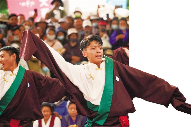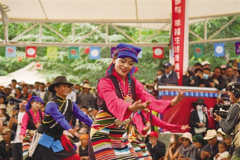 從傳統(tǒng)民族舞到現(xiàn)代創(chuàng)新舞,每支舞蹈都蘊(yùn)含著藏族人民對家鄉(xiāng)的熱愛和對美好生活的向往。比賽中,參賽人員身著特色民族服飾,伴隨著優(yōu)美激昂的旋律,踩著歡快的節(jié)拍,以飽滿的熱情和精湛的舞技,演繹了一場精彩而富有特色地域文化的廣場舞盛宴,凸顯了非物質(zhì)文化遺產(chǎn)的傳承創(chuàng)新發(fā)展。