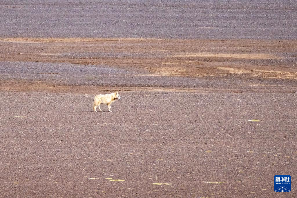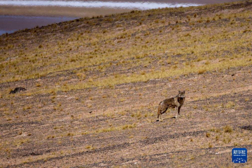 草原上伺機(jī)而動(dòng)的野狼(6月13日攝)。新華社記者 旦增尼瑪曲珠 攝