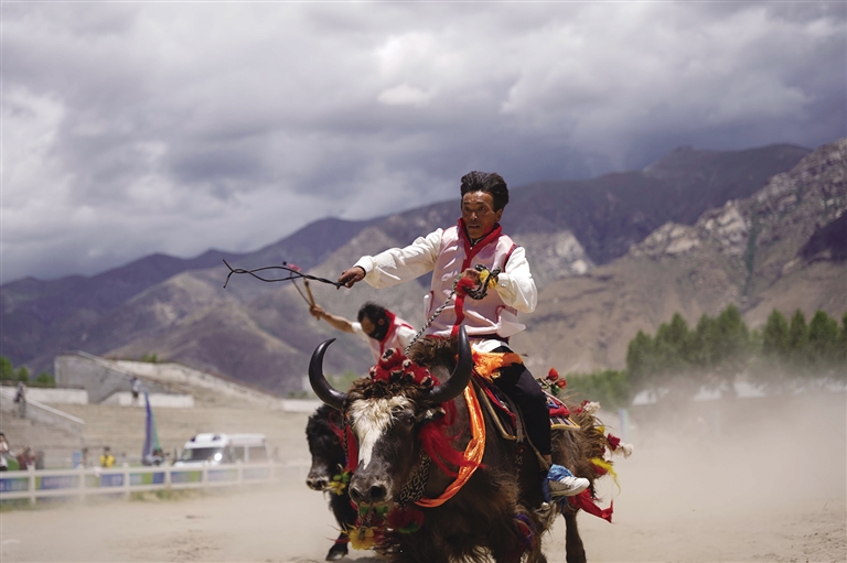 6月22日,由拉薩市人民政府主辦的拉薩首屆農(nóng)牧民運動會在拉薩開幕。本屆運動會為期5天,設(shè)競技項目、民族傳統(tǒng)與趣味項目兩個大類,涵蓋押加(大象拔河)、賽牦牛、藏棋、秀茲(藏式骰子)等19個比賽項目,共有來自拉薩市各縣(區(qū))、功能園區(qū)的11支代表隊500余名運動員參賽。