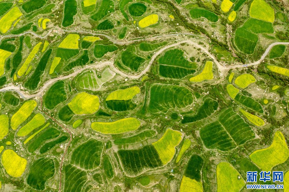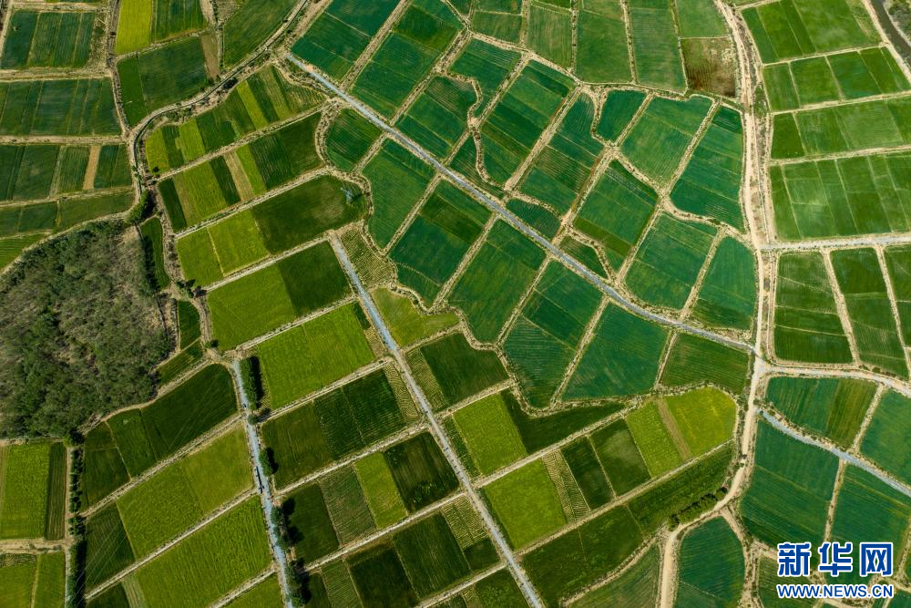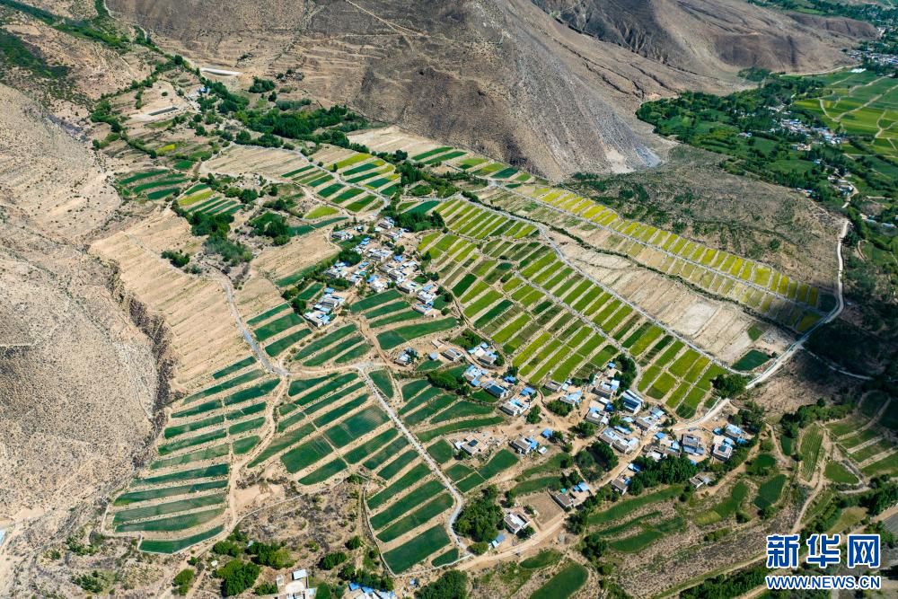 6月21日在西藏山南市乃東區(qū)境內(nèi)拍攝的田園風(fēng)光(無人機(jī)照片)。新華網(wǎng) 旦增努布 攝