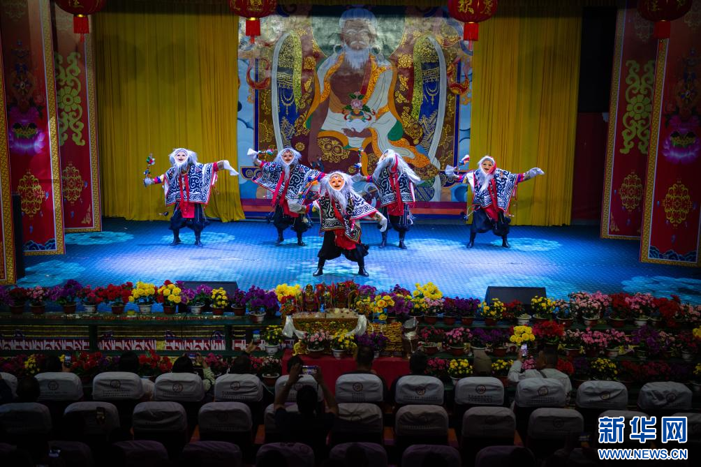 6月24日,群眾在國家級非物質(zhì)文化遺產(chǎn)雅礱扎西雪巴藏戲傳習基地表演傳統(tǒng)舞蹈節(jié)目。新華網(wǎng) 旦增努布 攝