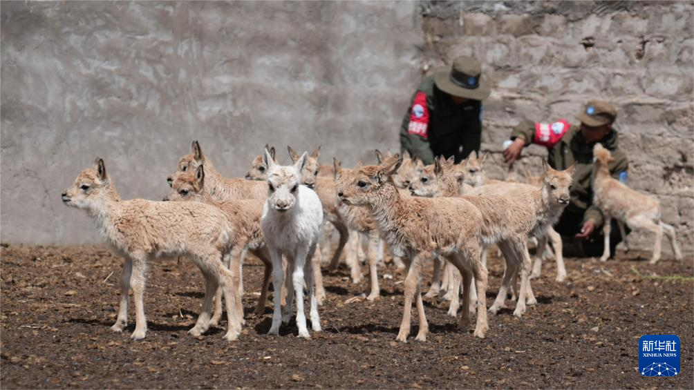 與母羊走散的藏羚羊幼崽在尼瑪縣措羅木管護站接受救助(7月13日攝)。新華社發(fā)(旦增攝)