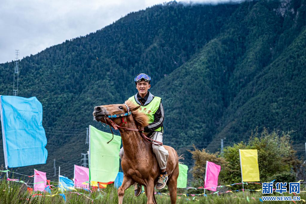 西藏林芝市林芝鎮(zhèn)第七屆尼洋旅游文化之民俗賽馬藝術(shù)節(jié)活動走馬比賽(7月22日攝)。新華網(wǎng) 旦增努布 攝