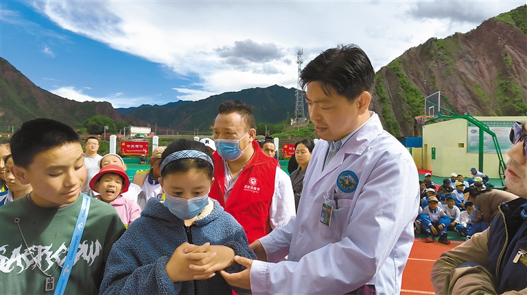 圖為青島援藏組“山海情·紅馬甲”醫(yī)療志愿者服務(wù)隊為日喀則市桑珠孜區(qū)群眾義診。記者 李洲 攝