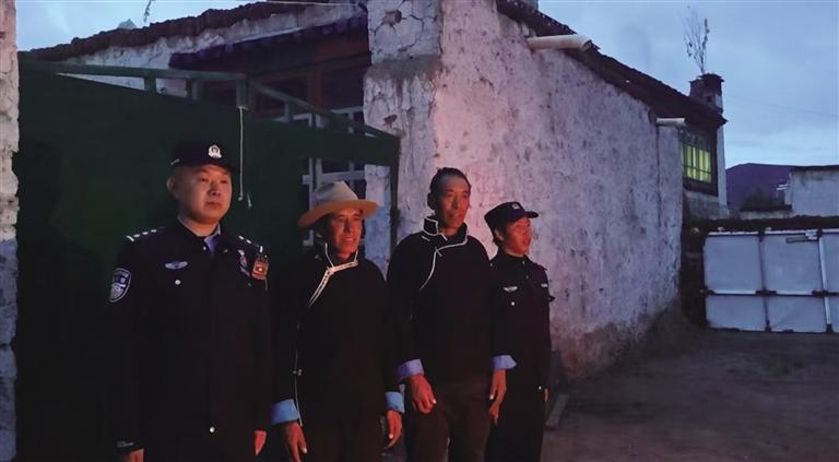 涅如麥邊境派出所教導(dǎo)員謝小杰(左一)、格桑(左二)、格桑的哥哥羅杰(右二)。