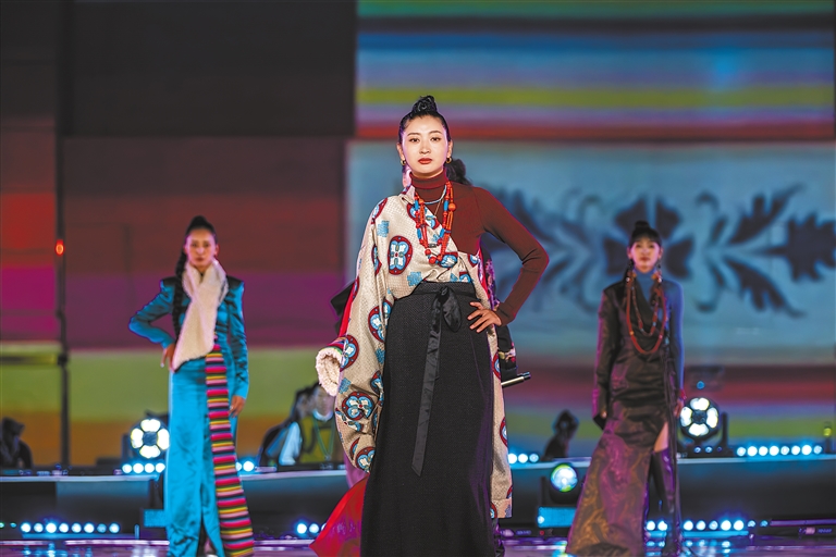 服裝秀表演《天上的羊卓雍措》在晚會中驚艷亮相。系列服飾完美融合了藏族傳統(tǒng)服飾元素與當(dāng)代時尚潮流,是由湖南省援藏工作隊株洲工作組的成員們以扎囊縣氆氌為原料創(chuàng)作而成。開幕式總導(dǎo)演李詞岳說:“為了更好地展現(xiàn)舞臺效果,我們團(tuán)隊克服高原反應(yīng),專門前往羊卓雍措拍攝服裝秀相關(guān)素材,希望通過這次服裝秀讓更多人了解山南、走進(jìn)山南。”