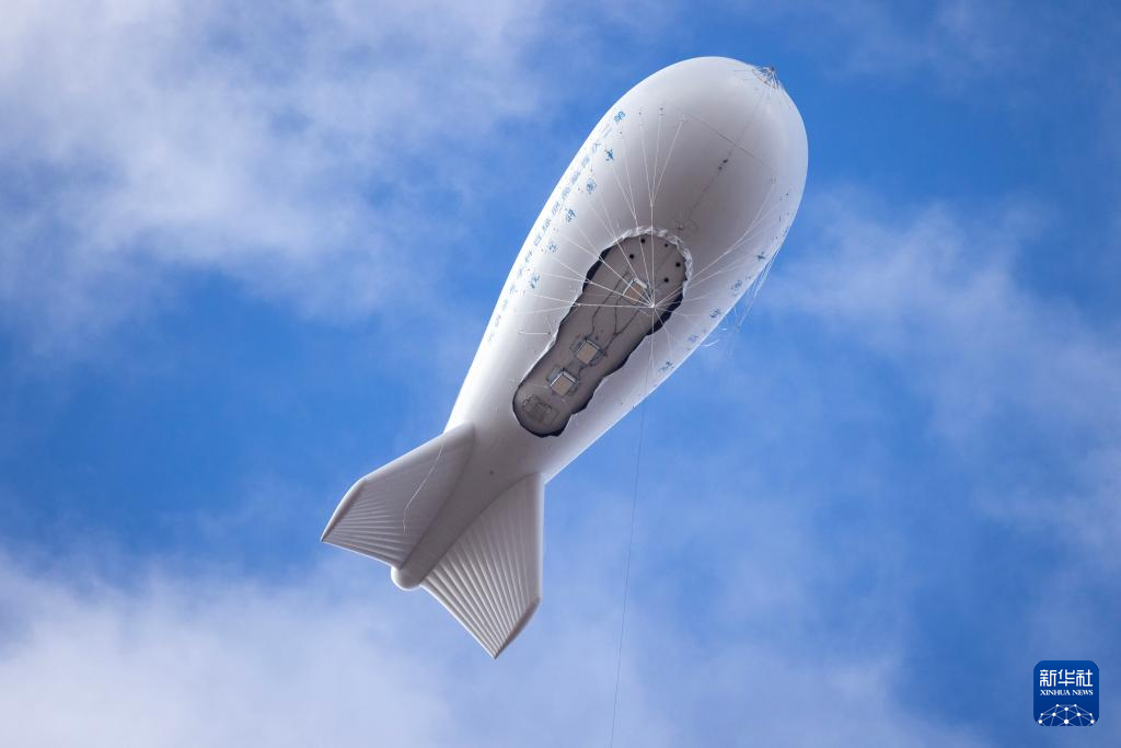 形似“大白鯨”的極目一號Ⅰ型浮空艇14日在西藏雙湖完成了22天來的第8次科學(xué)觀測。