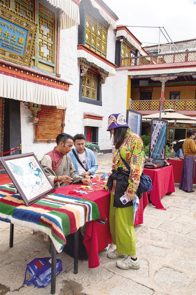 “你看,這個(gè)玩偶好別致,而且很有分量感!”走進(jìn)夏扎大院,來(lái)自西安的游客王女士正在卓番林·措瓦店內(nèi)選購(gòu)。卓瑪介紹,卓番林·措瓦巧妙融合傳統(tǒng)精髓與現(xiàn)代審美、藝術(shù)靈感與生活實(shí)用,致力于通過(guò)溫馨而富有情感的產(chǎn)品,守護(hù)并傳承精湛的手工藝,同時(shí)讓西藏的手工藝成為每個(gè)家庭溫馨記憶的守護(hù)者。