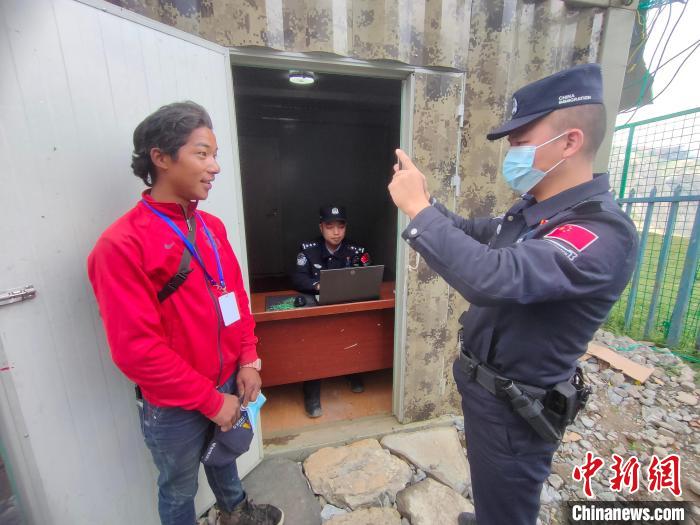 圖為吉隆出入境邊防檢查站民警在貢當(dāng)傳統(tǒng)邊貿(mào)點對入境邊民進(jìn)行人證對照?!〖拒?攝