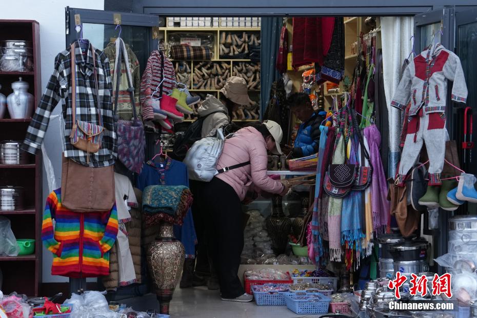 9月30日,游客在位于西藏阿里地區(qū)普蘭縣的唐噶邊貿(mào)市場選購商品。中新社記者 崔楠 攝