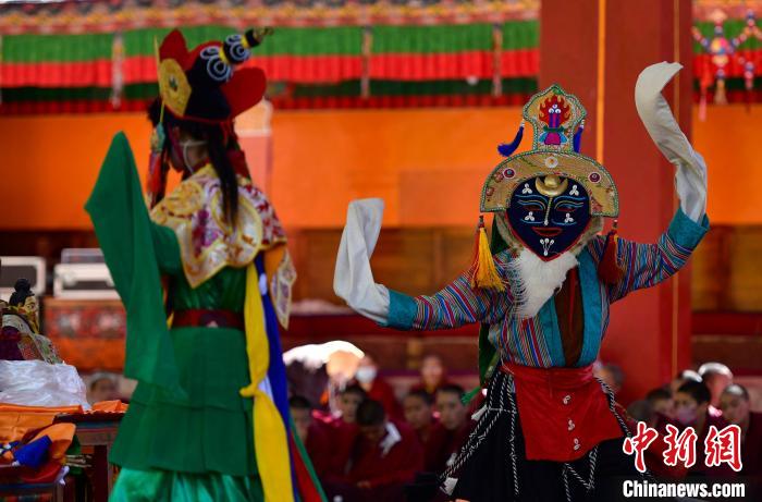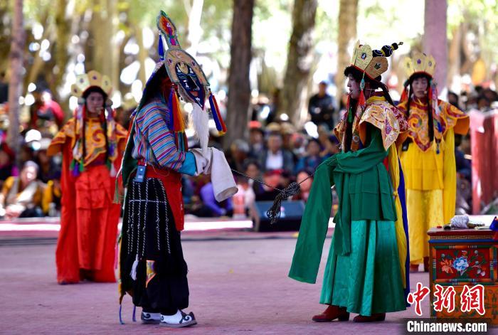 10月7日,西藏自治區(qū)日喀則市扎什倫布寺內(nèi)上演傳統(tǒng)八大藏戲之一《諾桑王子》,吸引僧俗民眾觀看。藏戲集說唱、表演、歌舞、文學(xué)于一體,有著600多年歷史,被譽(yù)為藏文化的“活化石”。中新社記者 李林 攝