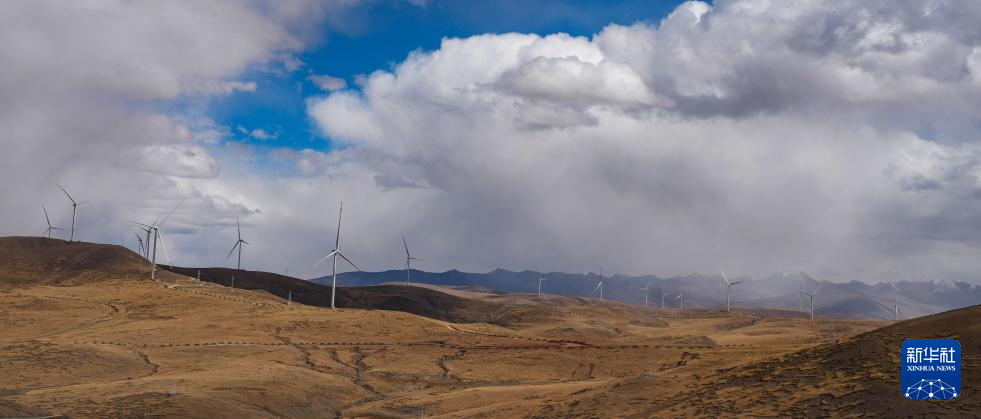 10月17日拍攝的位于西藏日喀則市薩迦縣的風(fēng)力發(fā)電機組。新華社記者 晉美多吉 攝?
