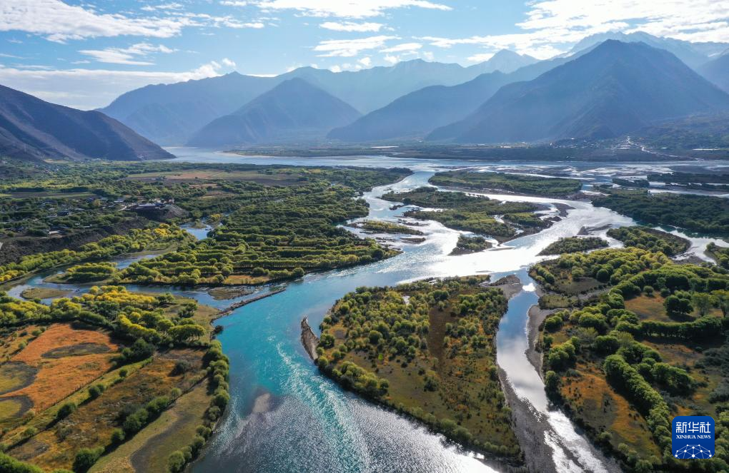 這是10月24日在西藏林芝雅尼國家濕地公園內(nèi)拍攝的尼洋河(無人機照片)。新華社記者 李賀 攝