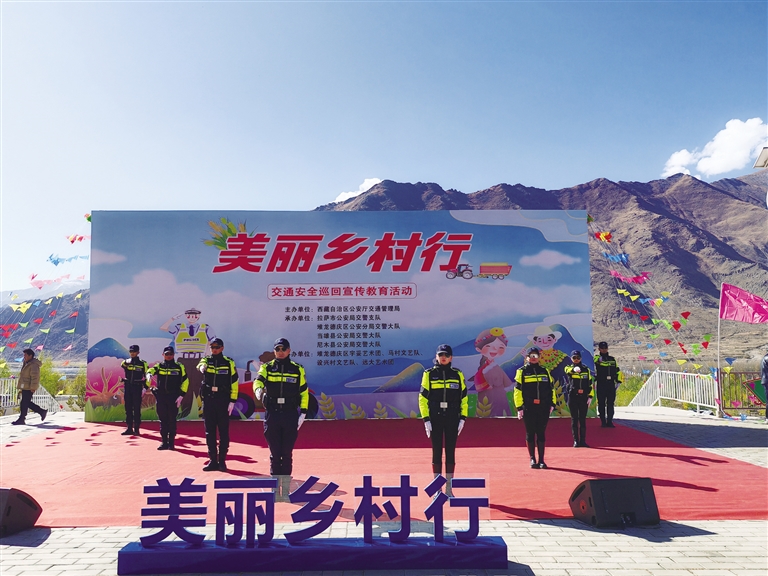 為全面提升農(nóng)牧區(qū)群眾交通安全意識(shí)、法治意識(shí)、文明意識(shí),全力防范涉農(nóng)道路交通事故、保障農(nóng)牧區(qū)廣大群眾生命財(cái)產(chǎn)安全和出行安全,近日,由自治區(qū)公安廳交通管理局主辦,拉薩市公安局交警支隊(duì)、堆龍德慶公安分局交警大隊(duì)、當(dāng)雄縣公安局交警大隊(duì)、尼木縣公安局交警大隊(duì)承辦的“美麗鄉(xiāng)村行”交通安全巡回宣傳教育活動(dòng)在堆龍德慶區(qū)古榮鎮(zhèn)加入村榮瑪搬遷點(diǎn)舉行。