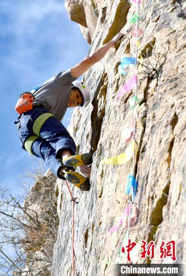 11月17日,2024年西藏自治區(qū)攀巖自然巖壁公開賽決賽在拉薩市城關(guān)區(qū)奪底街道吉倉(cāng)自然巖壁場(chǎng)地舉行。本次賽事共有來自全國(guó)的55名選手參賽,分預(yù)賽和決賽兩輪。圖為參賽選手劉亞豪決賽中。中新社記者 李林 攝