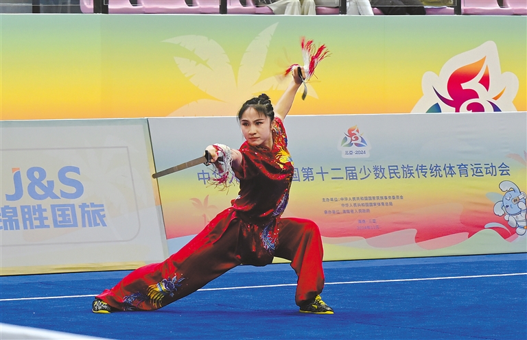 在民族武術(shù)項目比賽中,西藏選手趙爽獲得女子傳統(tǒng)雙器械一等獎,閻小樂獲得女子傳統(tǒng)單器械二等獎,許其格獲得女子傳統(tǒng)軟器械三等獎。