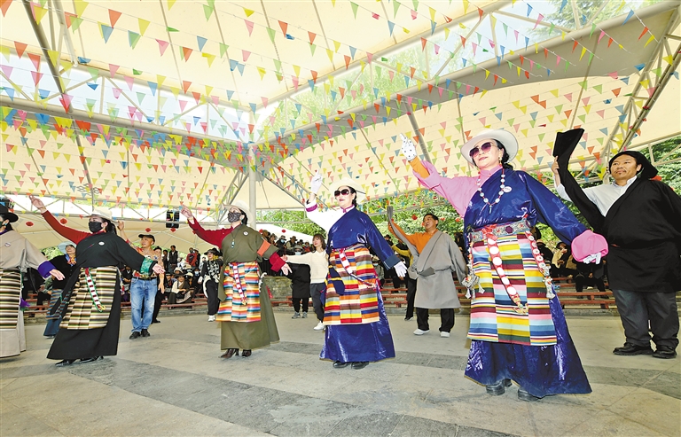 拉薩市策門(mén)林社區(qū)居民委員會(huì)聯(lián)合自治區(qū)人民醫(yī)院干部保健處黨支部在宗角祿康公園開(kāi)展義診活動(dòng)。記者 唐斌 攝