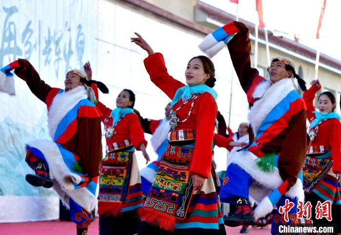 圖為第三屆“鄉(xiāng)村振興 那曲奮進(jìn)”成果轉(zhuǎn)化暨第十八屆畜產(chǎn)品展銷會開幕式上的文藝演出。李林 攝